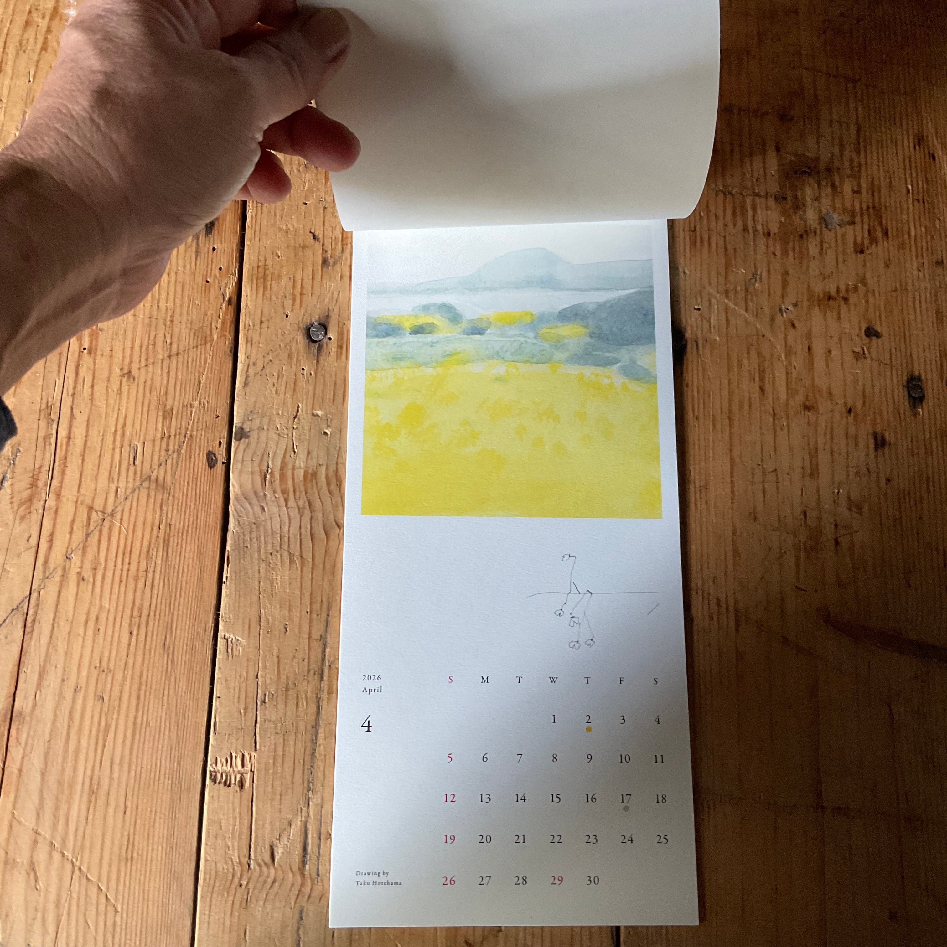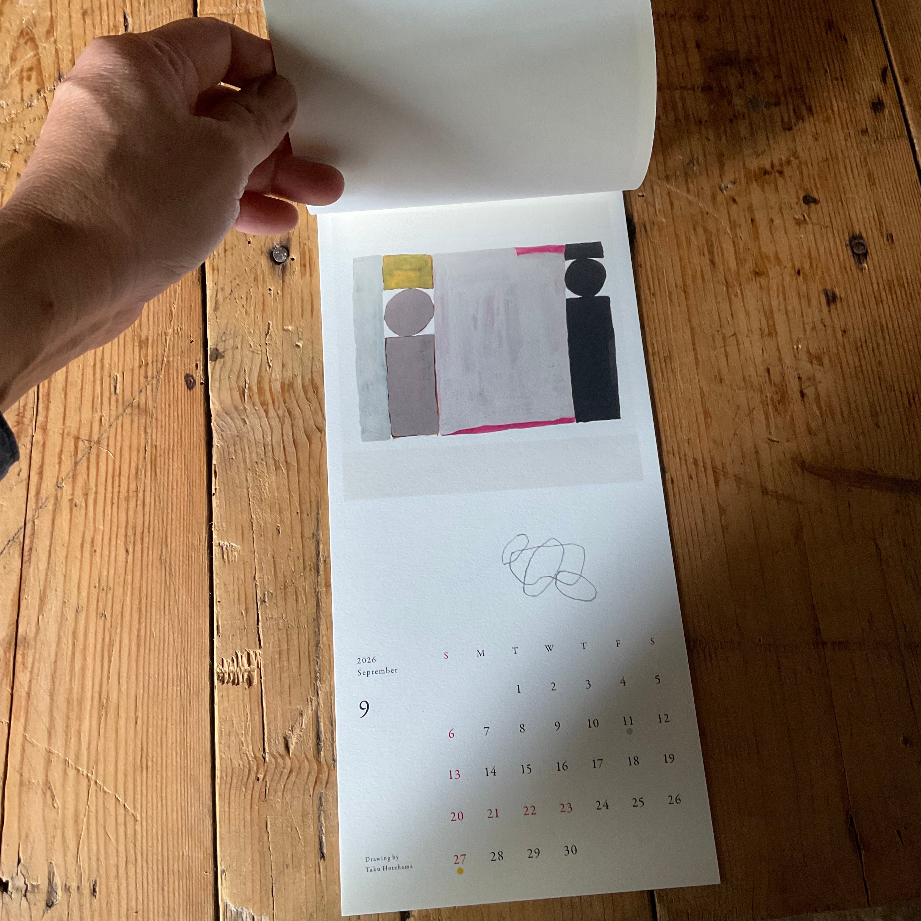 山口県在住の美術家・保手濱 拓さんのカレンダー。